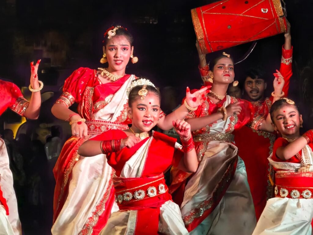 ২৭ সেপ্টেম্বর পঞ্চমীর সন্ধ্যা। উত্তর কলকাতার আহিরীটোলা সর্বজনীনের প্যান্ডেলে তখন ঢাকের তালে উপচে পড়ছে জনসমুদ্র। সন্ধ্যা পাঁচটা বাজতেই শুরু হল বহু প্রতীক্ষিত মুহূর্ত—পাঁচজন শিশু ও তাদের বাবা-মায়ের মিলিত ধুনুচি নাচ। ঢাকের বাদ্যি ও ঝলমলে আলোর মধ্যে ছোট ছোট হাতের ধুনুচি নাচ দর্শকদের হৃদয় জয় করে নিল। প্রতিটি হাসি, প্রতিটি পদক্ষেপে ঐতিহ্য আর নতুন প্রজন্মের আনন্দ মিশে গেল একাকার।